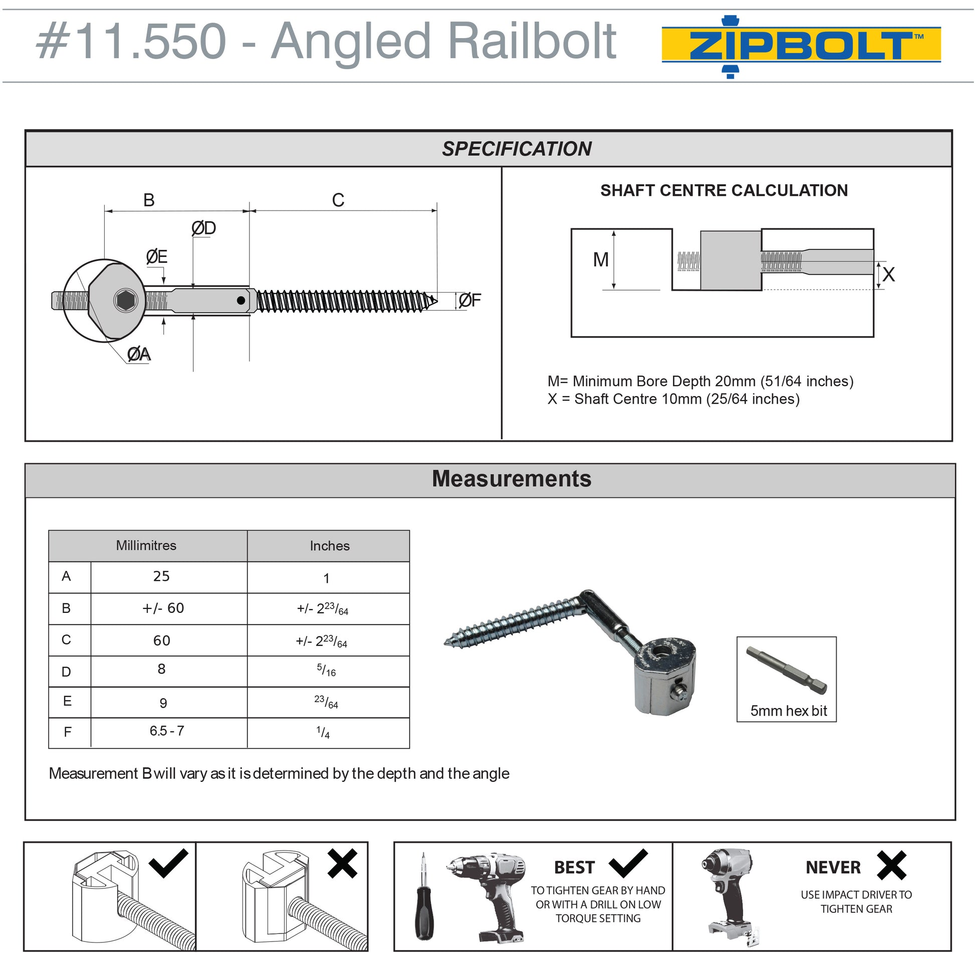 The Zipbolt UT Angled Railbolt 11.560 was designed for the stair industry to solve the challenge of securely attaching an angled handrail to a newel post using a hidden fastener. The connector features UT gear-driven technology, allowing easy tightening at a right angle, deep within the handrail, using a Torx driver in a drill or screwdriver.